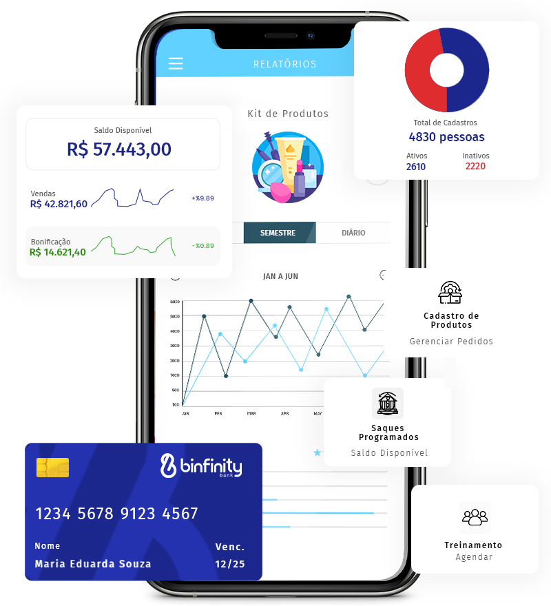 A Plataforma Box, é totalmente modular e se adapta às necessidades do seu plano de negócios, capaz de gerir equipe, bonificações, venda de produtos e acompanhar o desenvolvimento de toda as linhas de sua empresa.